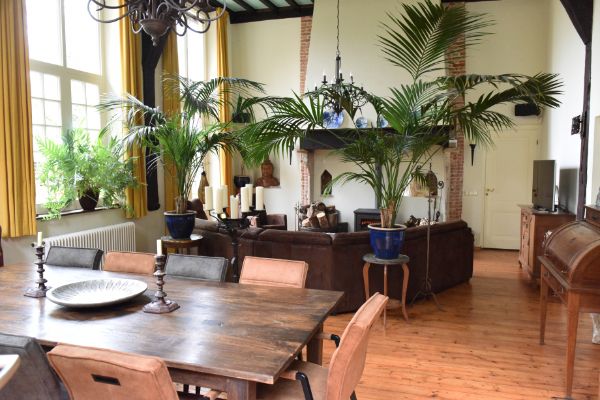 Deze ruimte van 45 m² ligt in het historische woonhuis en heeft een heel eigen karakter: oude balken uit begin 1400, hoge ramen, een oude schouw, een houten vloer en een plafondhoogte van 4,65 meter. Dat geeft de ruimte tegelijk lucht maar ook geborgenheid. Voor workshops met een meer reflectief, verdiepend of persoonlijk karakter is dat vaak precies wat een groep nodig heeft.