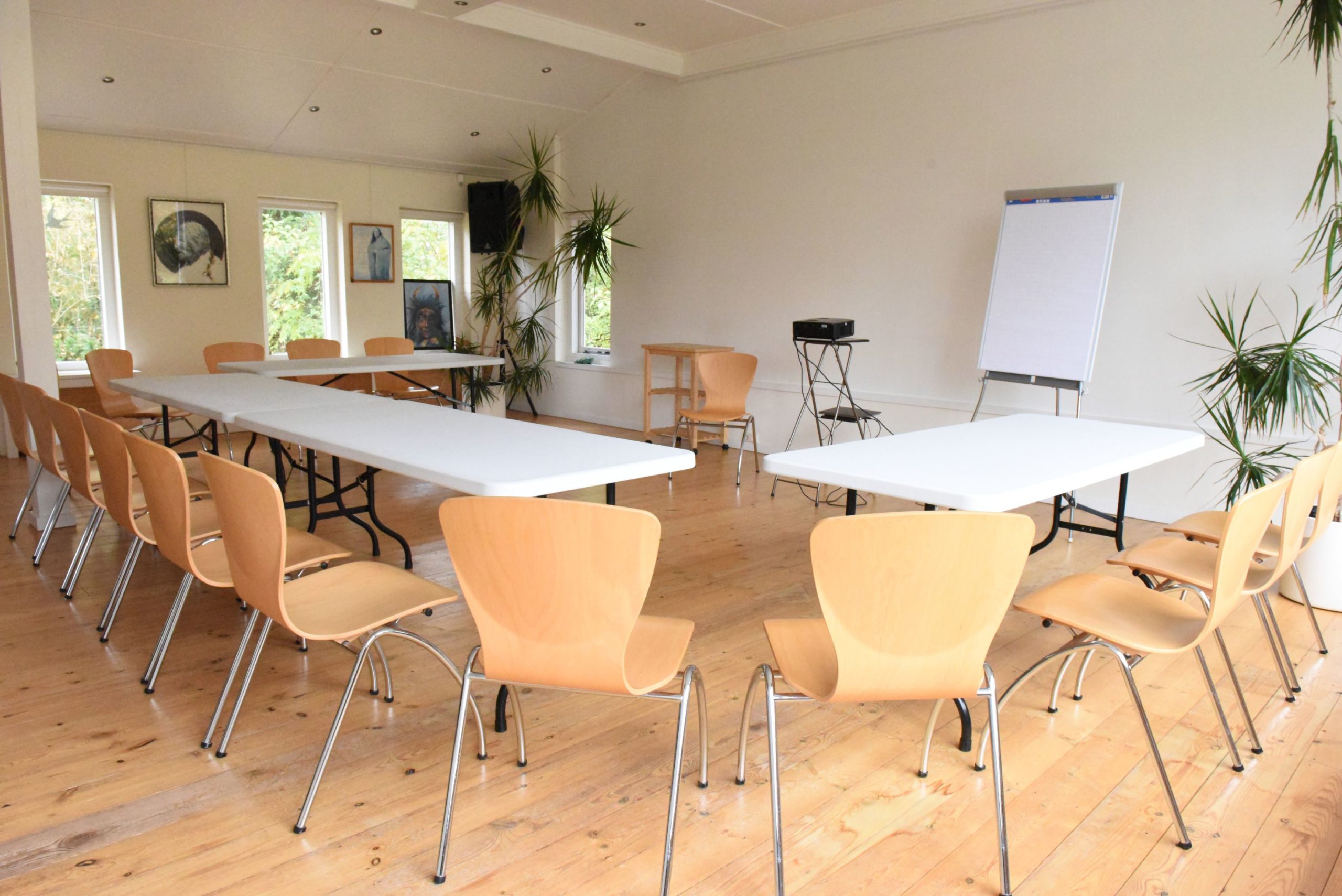 Een goede workshopruimte moet niet alleen inspireren, maar ook praktisch kloppen. Daarom is het prettig dat beide ruimtes zijn voorzien van basisfaciliteiten en presentatiemiddelen.